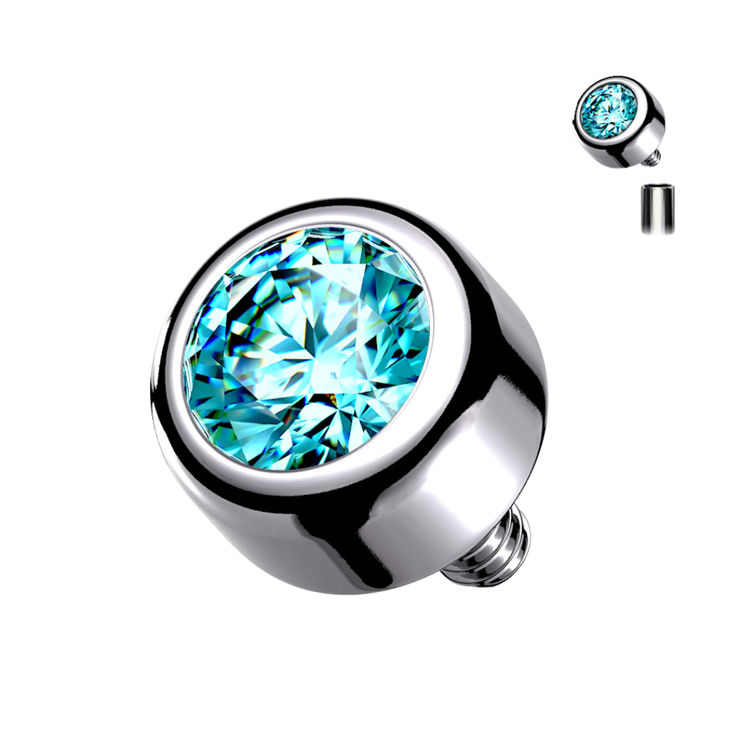 Titanium bezel set jewelled button tops for dermal anchors or other internally threaded jewellery