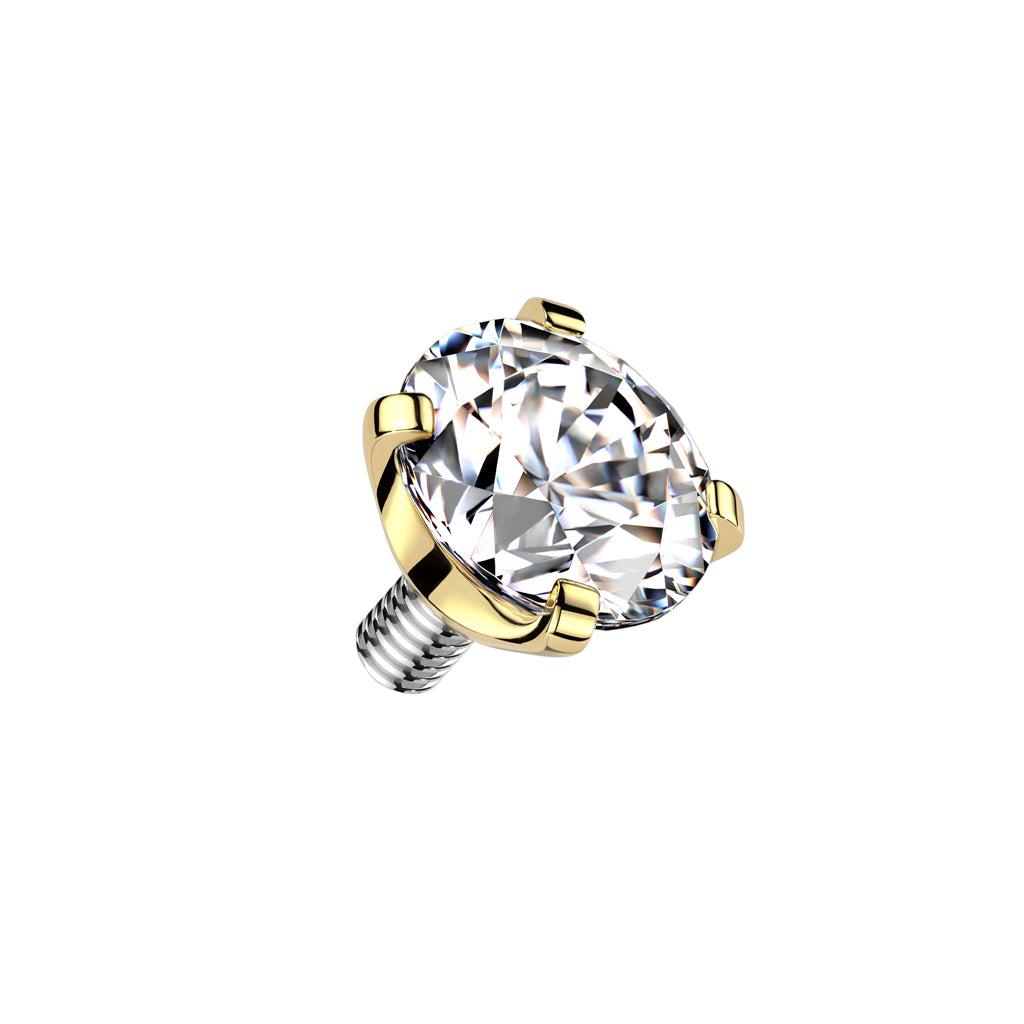 A beautiful sparkly prong-set cubic zirconia for dermal anchors or other internally threaded jewellery.  Round gem.