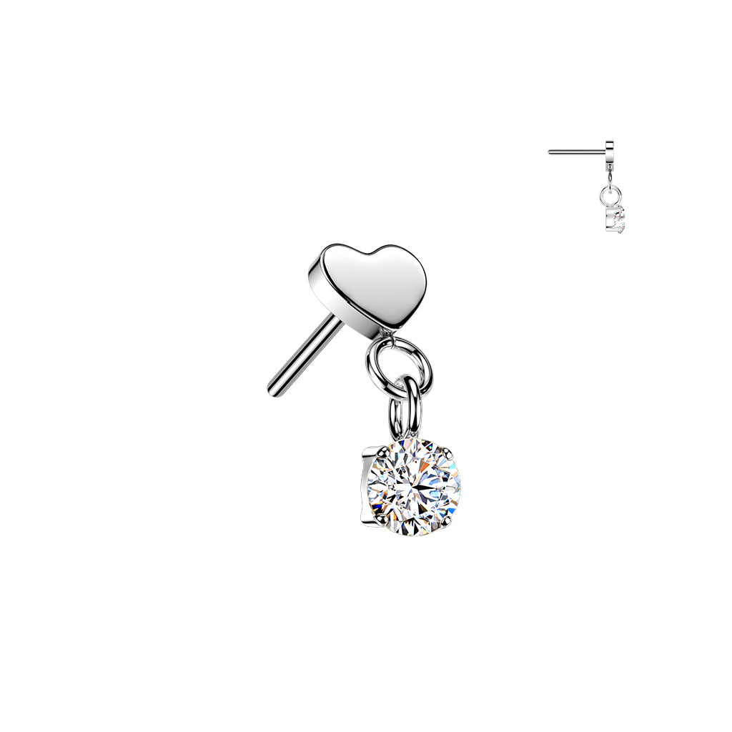 One clear gem, dangling from small heart-shaped titanium threadless top.