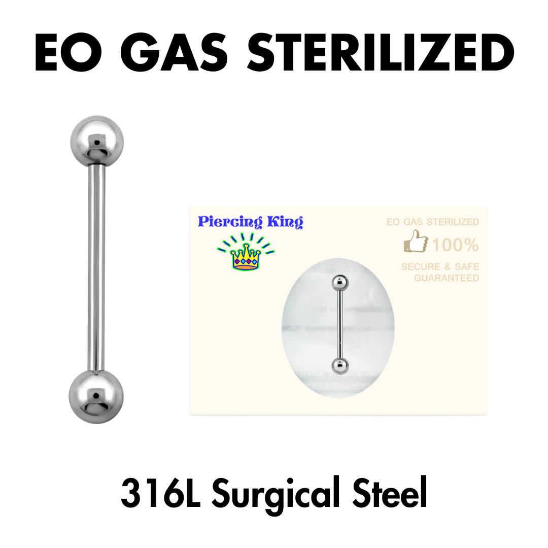 EO Gas pre-sterilized 316L surgical steel industrial barbell.  Externally Threaded.