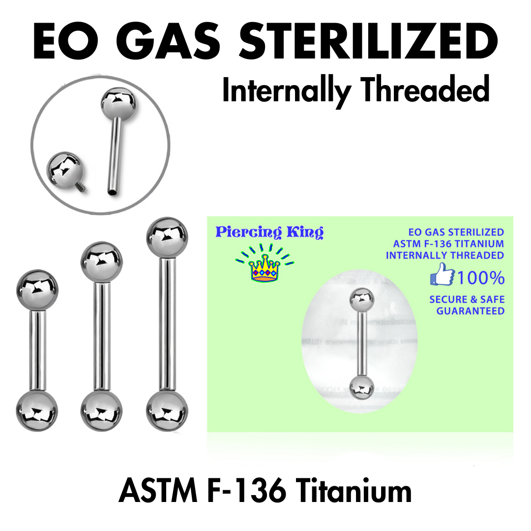 EO Gas pre-sterilized titanium barbells.  Internally Threaded.