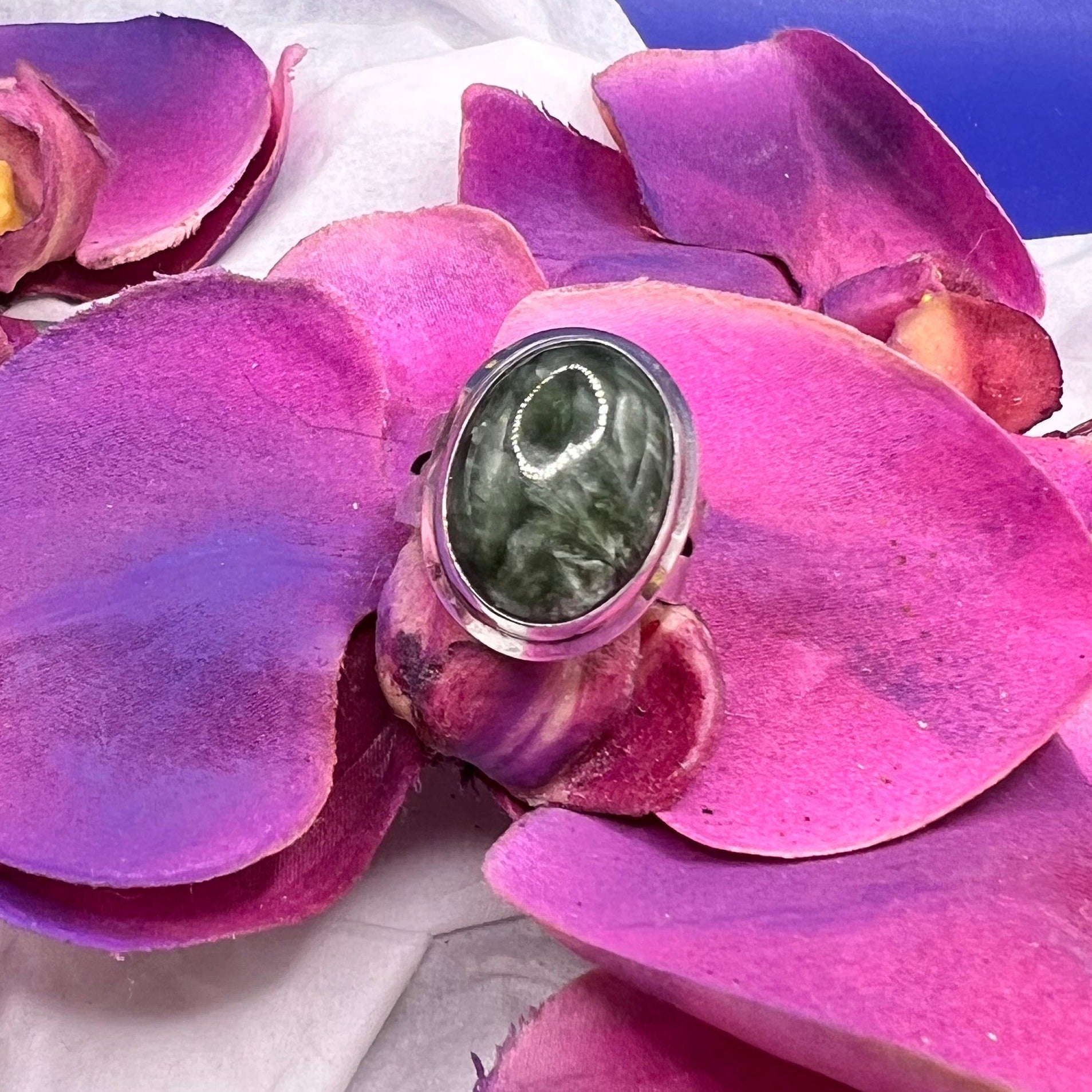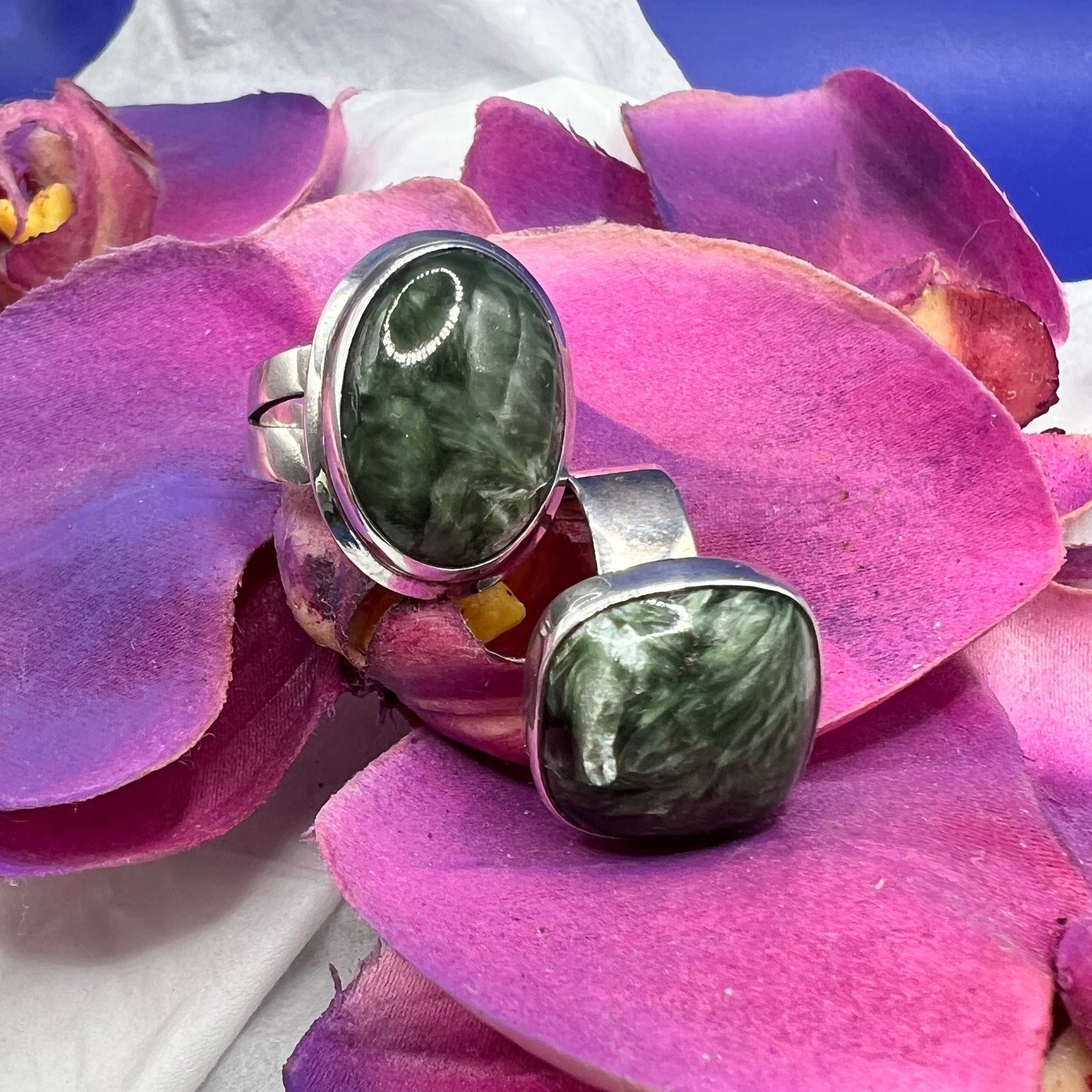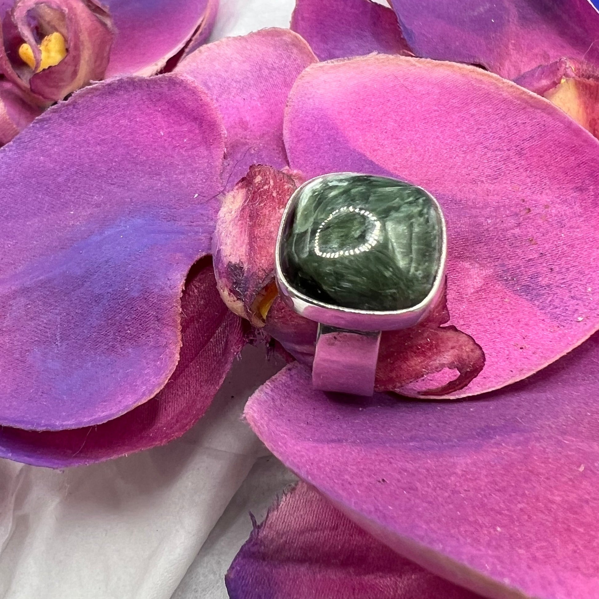 Sterling silver ring with a green gemstone.  Your choice of oval or square.